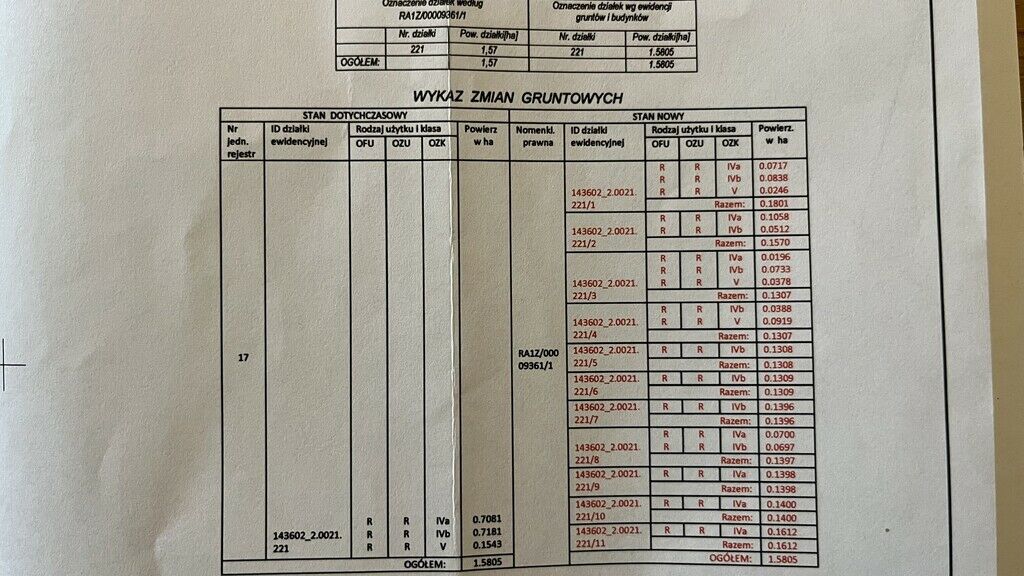 -powierzchnie kolejno - 1307 m2, 1308 m2, 1308 m2, 1309 m2, 1396 m2,